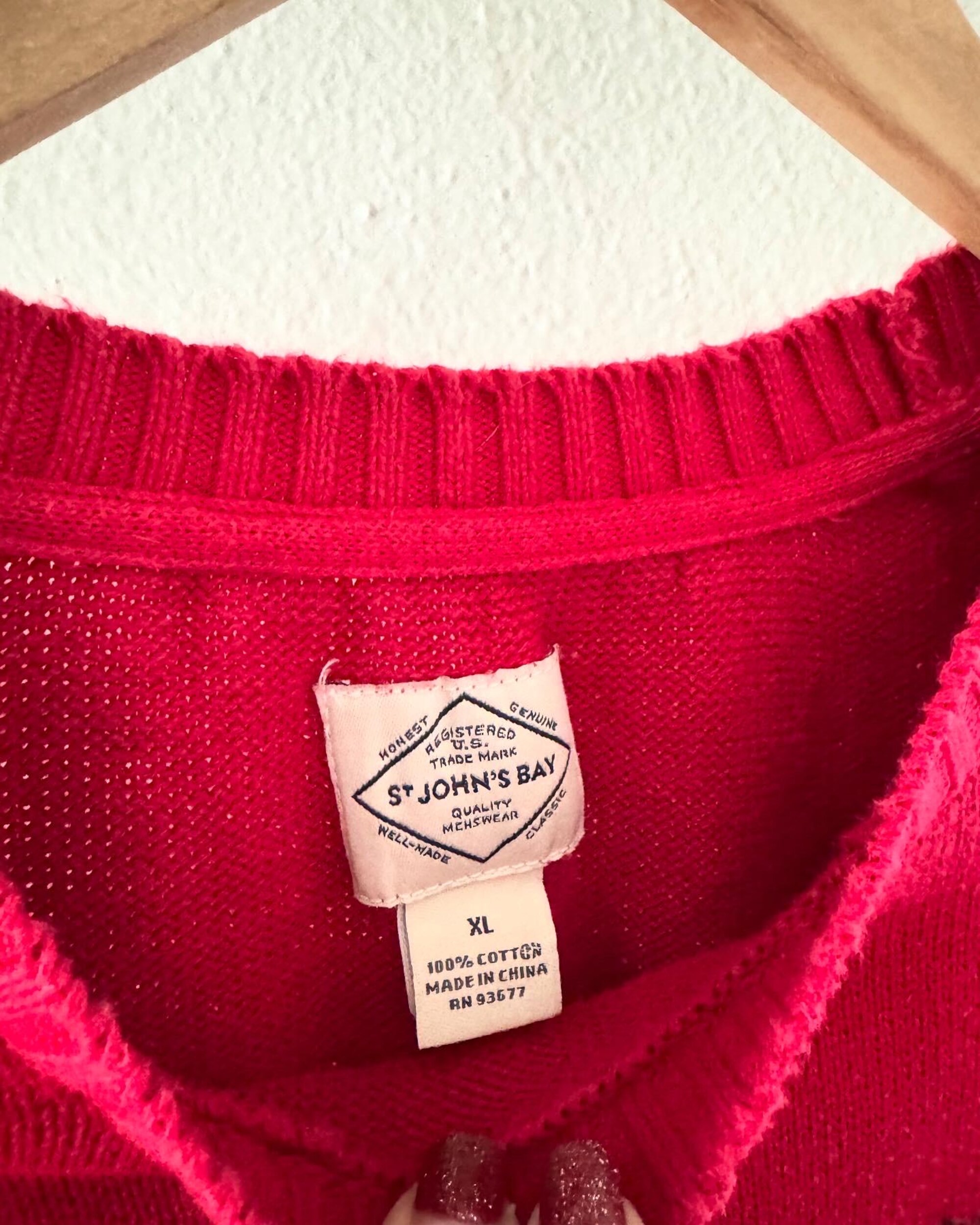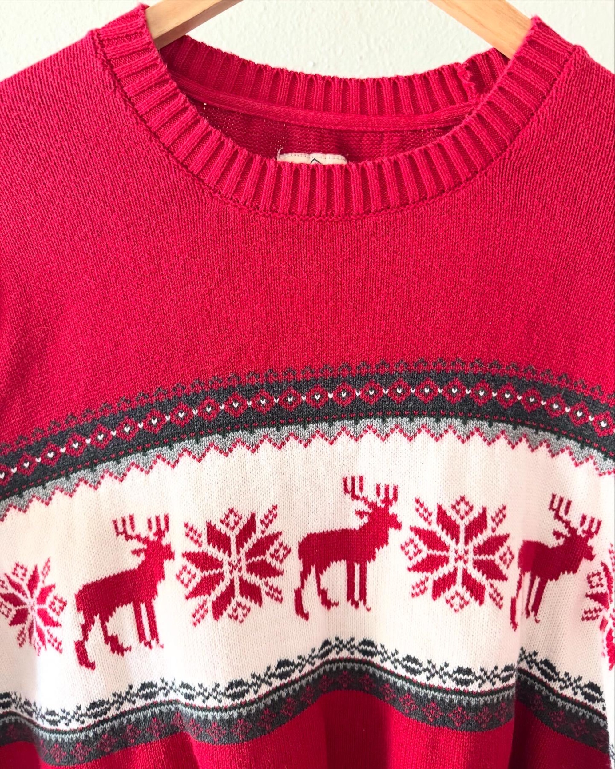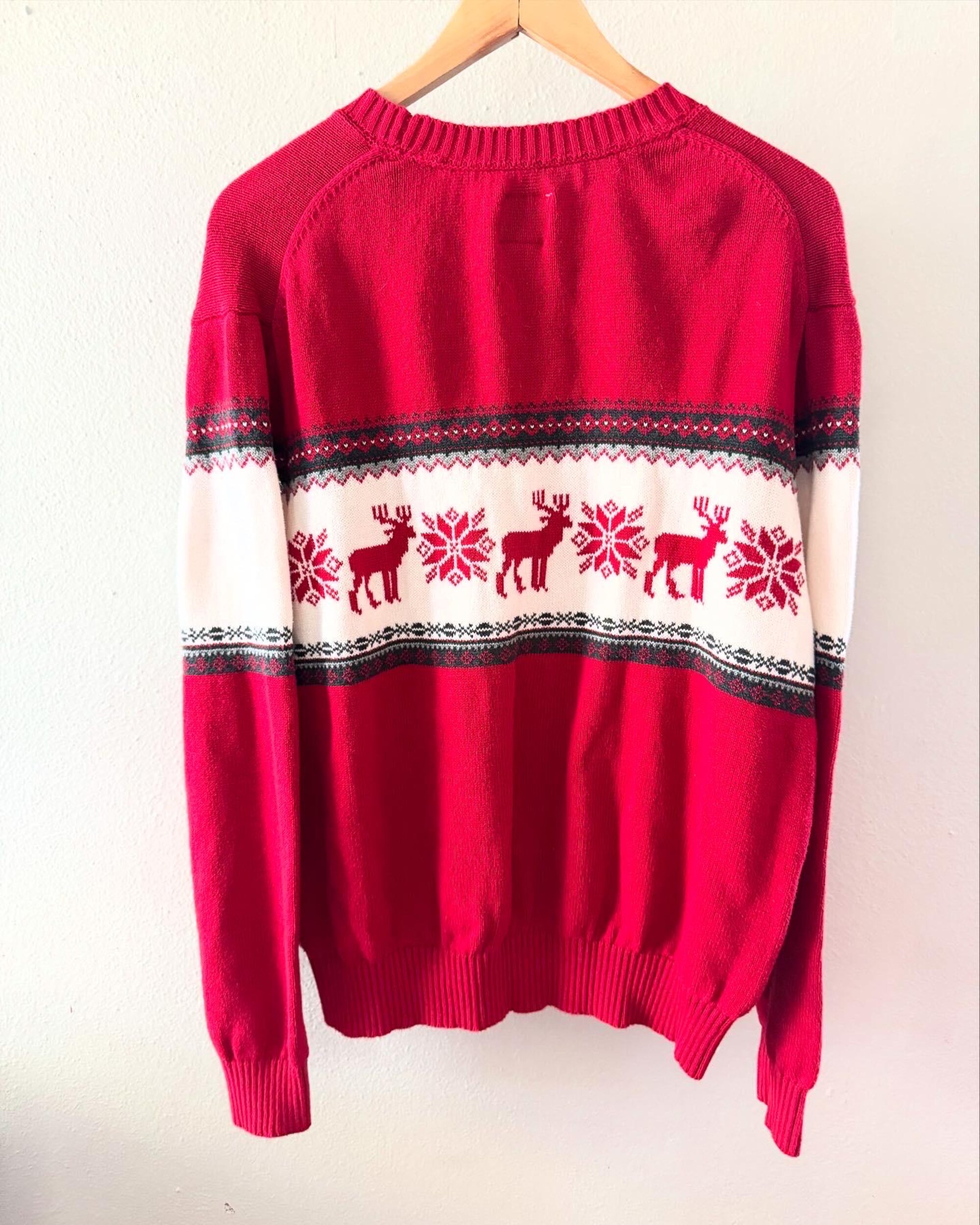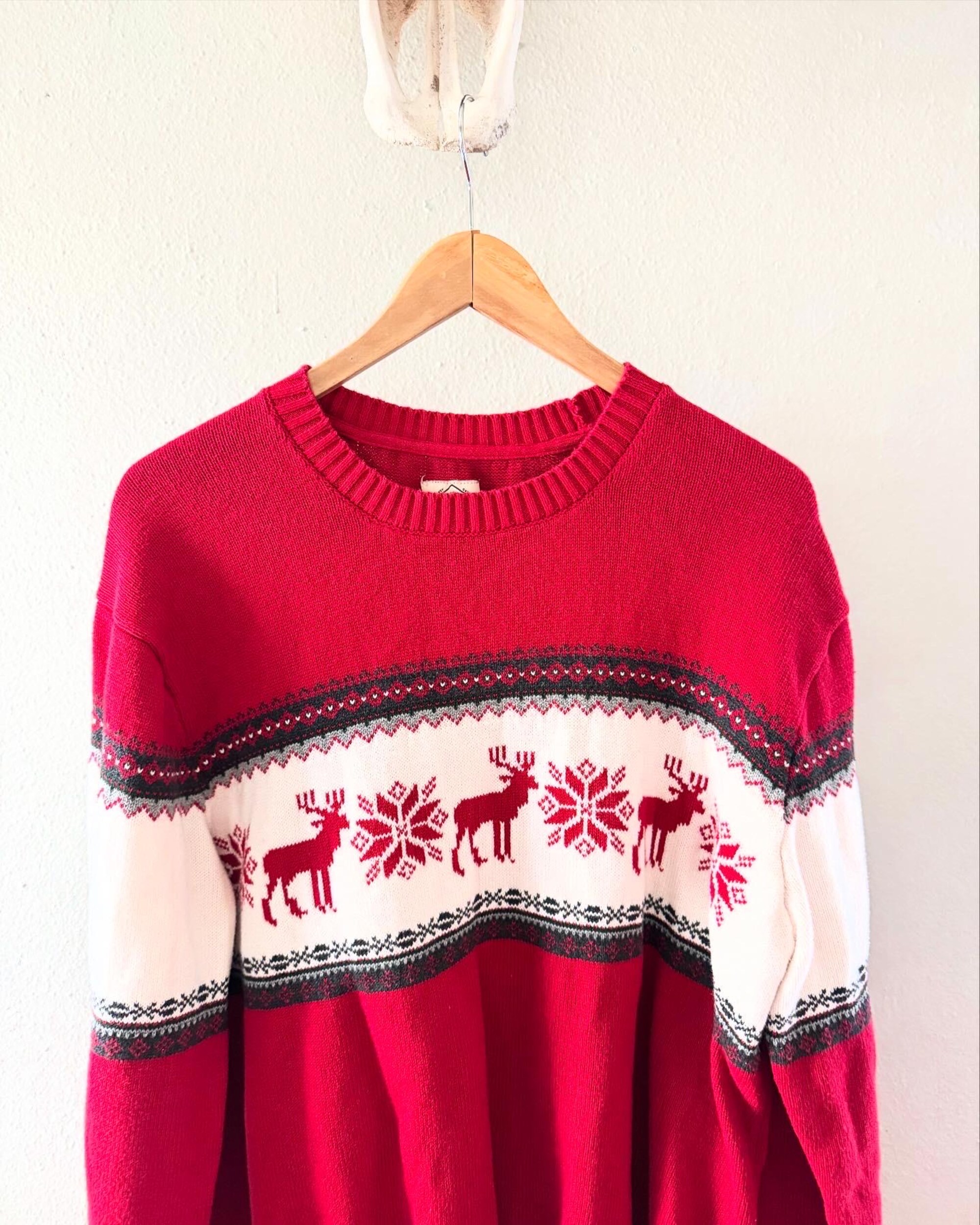 Vintage St. John’s Bay Christmas Sweater Classic Reindeer Red Black Cream_Men’s Size Extra Large. Unisex Winter Ski Sweater. Cabin Sweater.