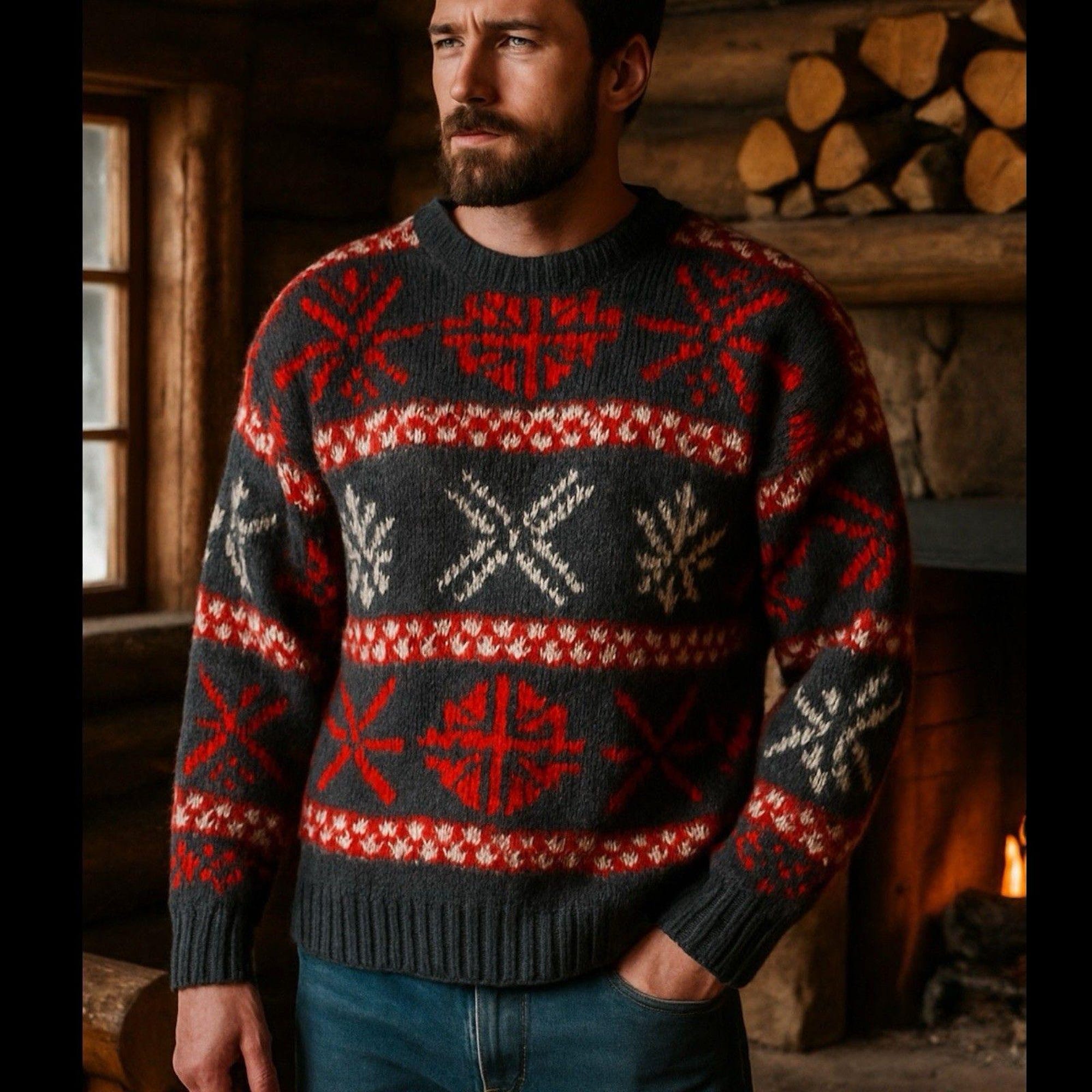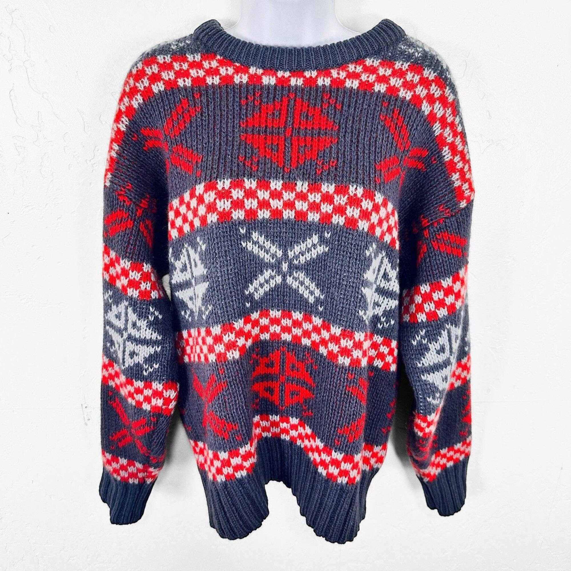 Vintage Woolrich Mens Thick Sweater M Fair Isle Nordic Snowflake Cozy Ranch
