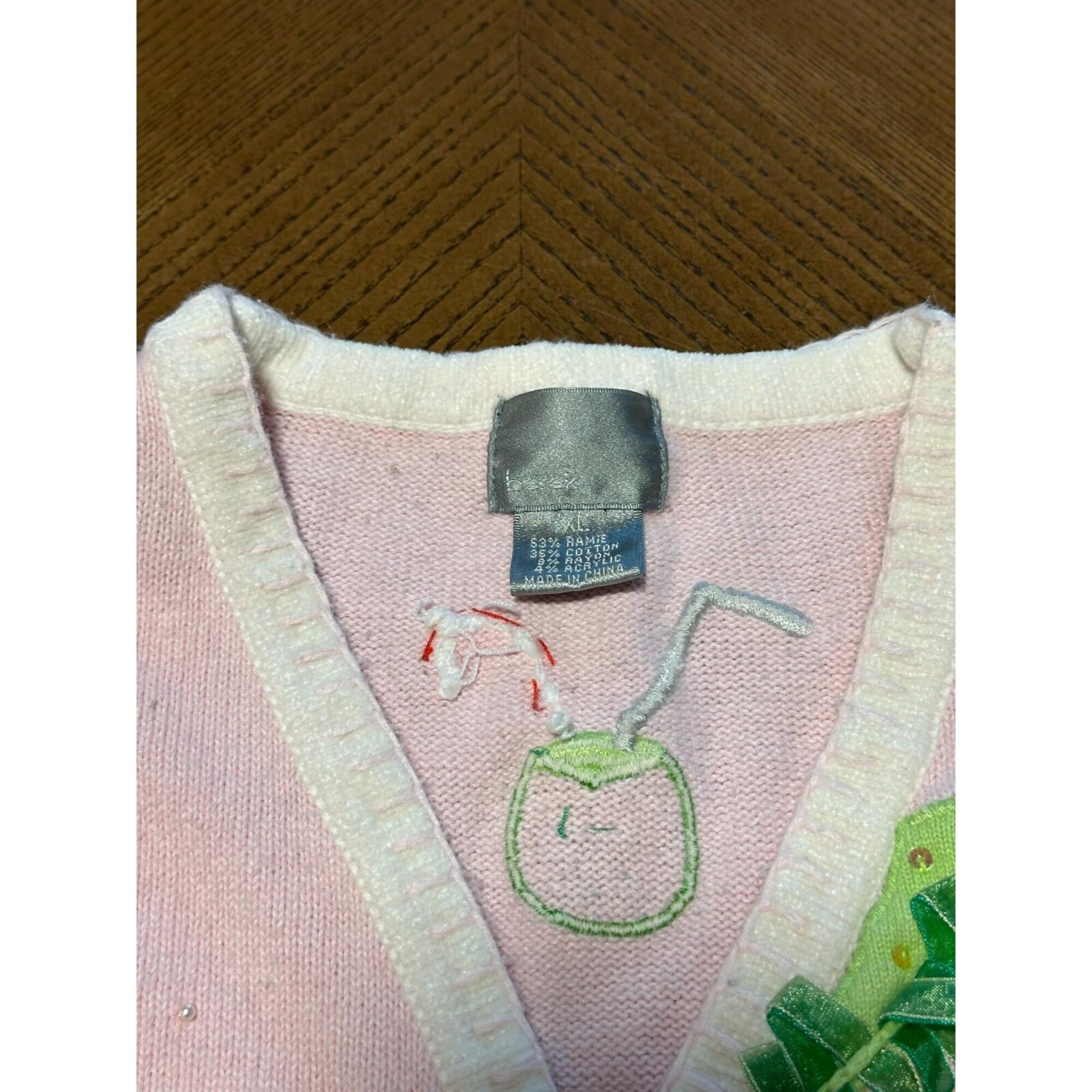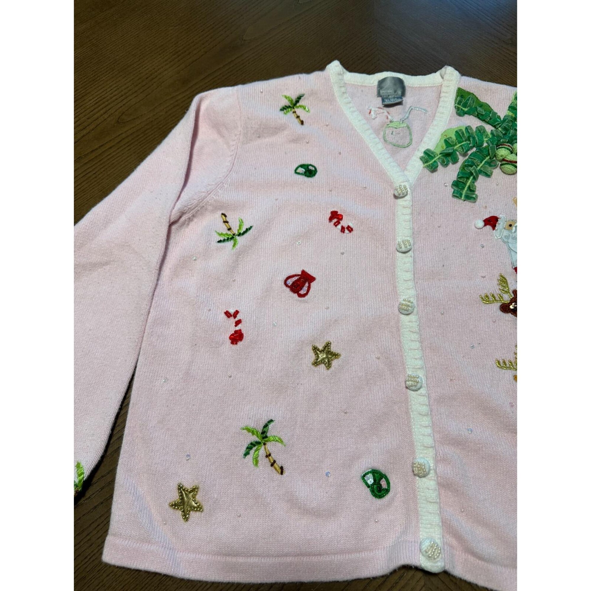 Vtg Berek Tropical Christmas Embellished Cardigan Ugly Christmas Sweater XL