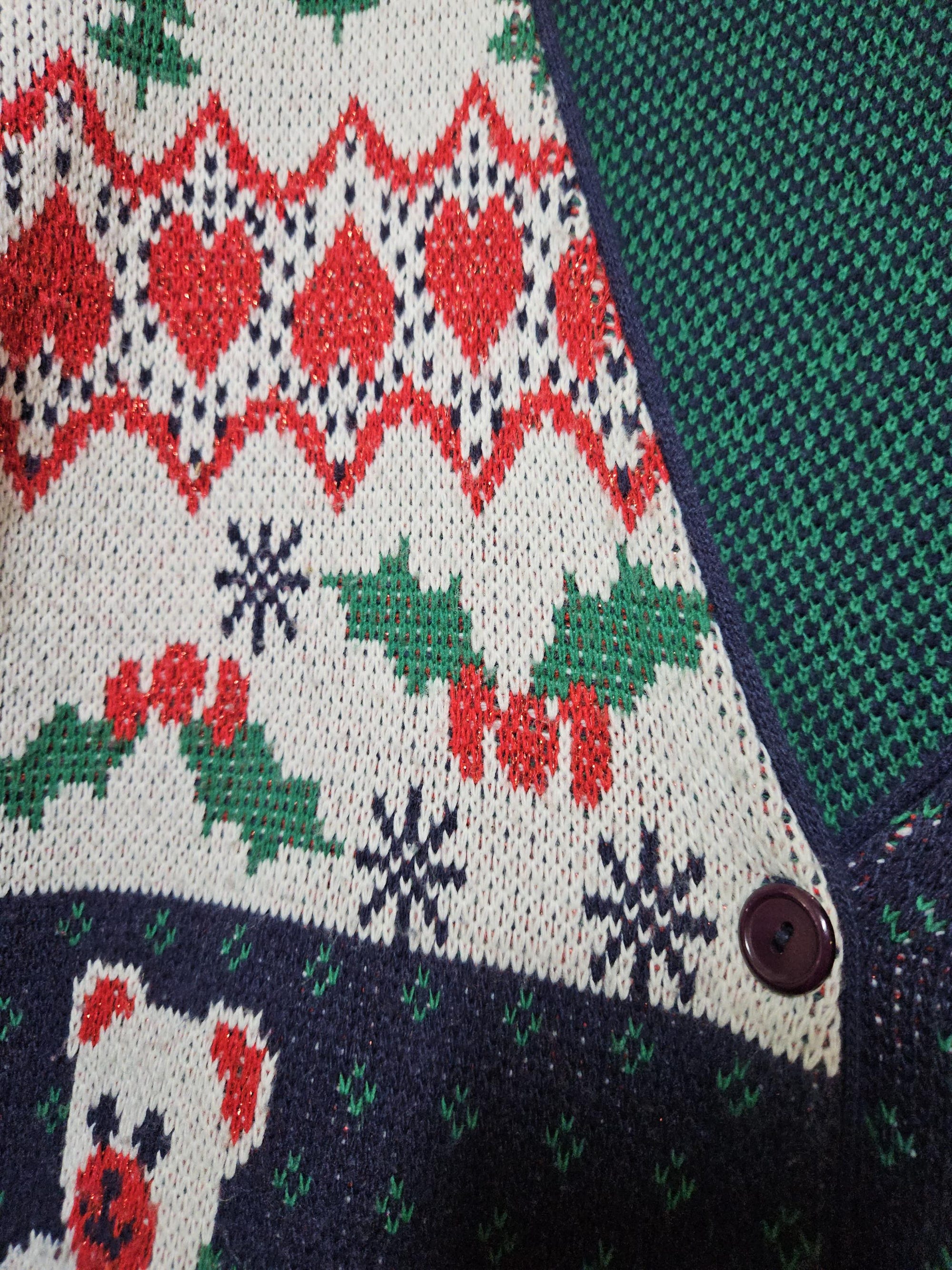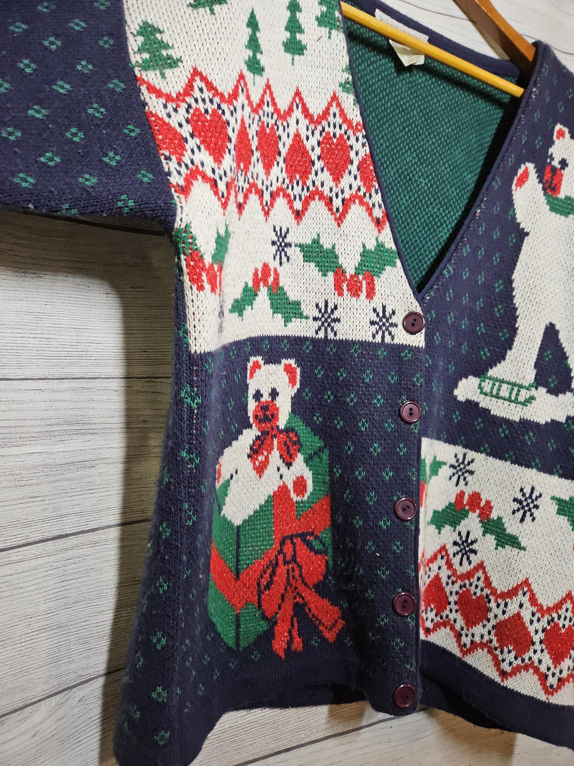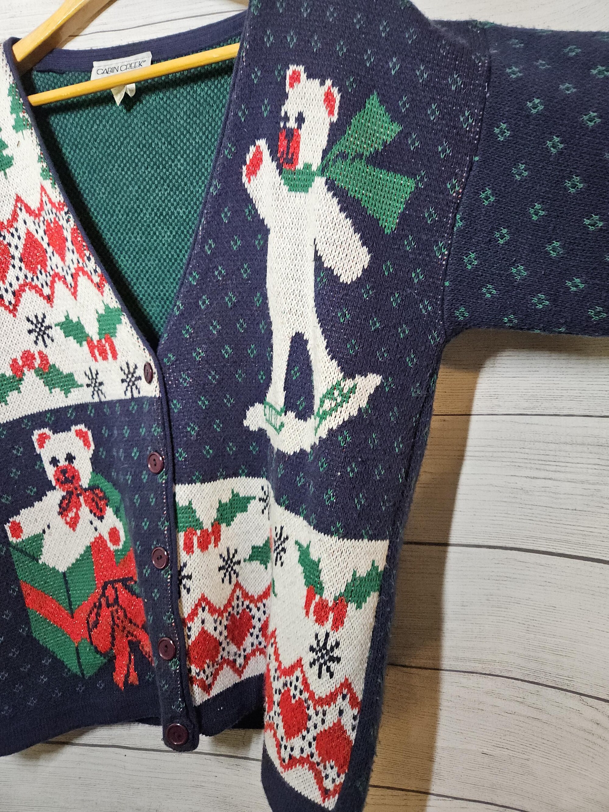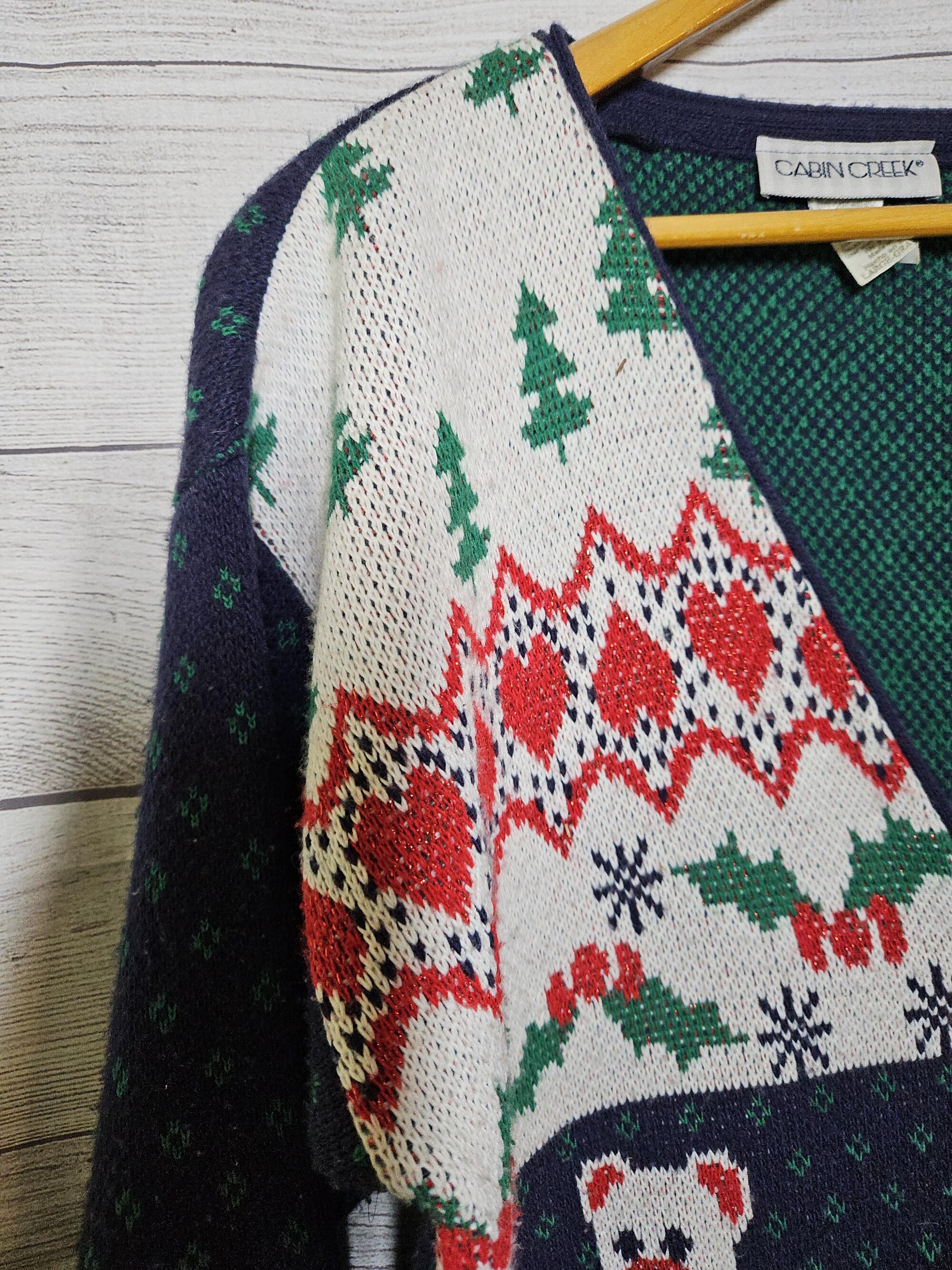 Vtg Cabin Creek Christmas Cardigan Sweater – Women’s LARGE -Blue/Green/Red