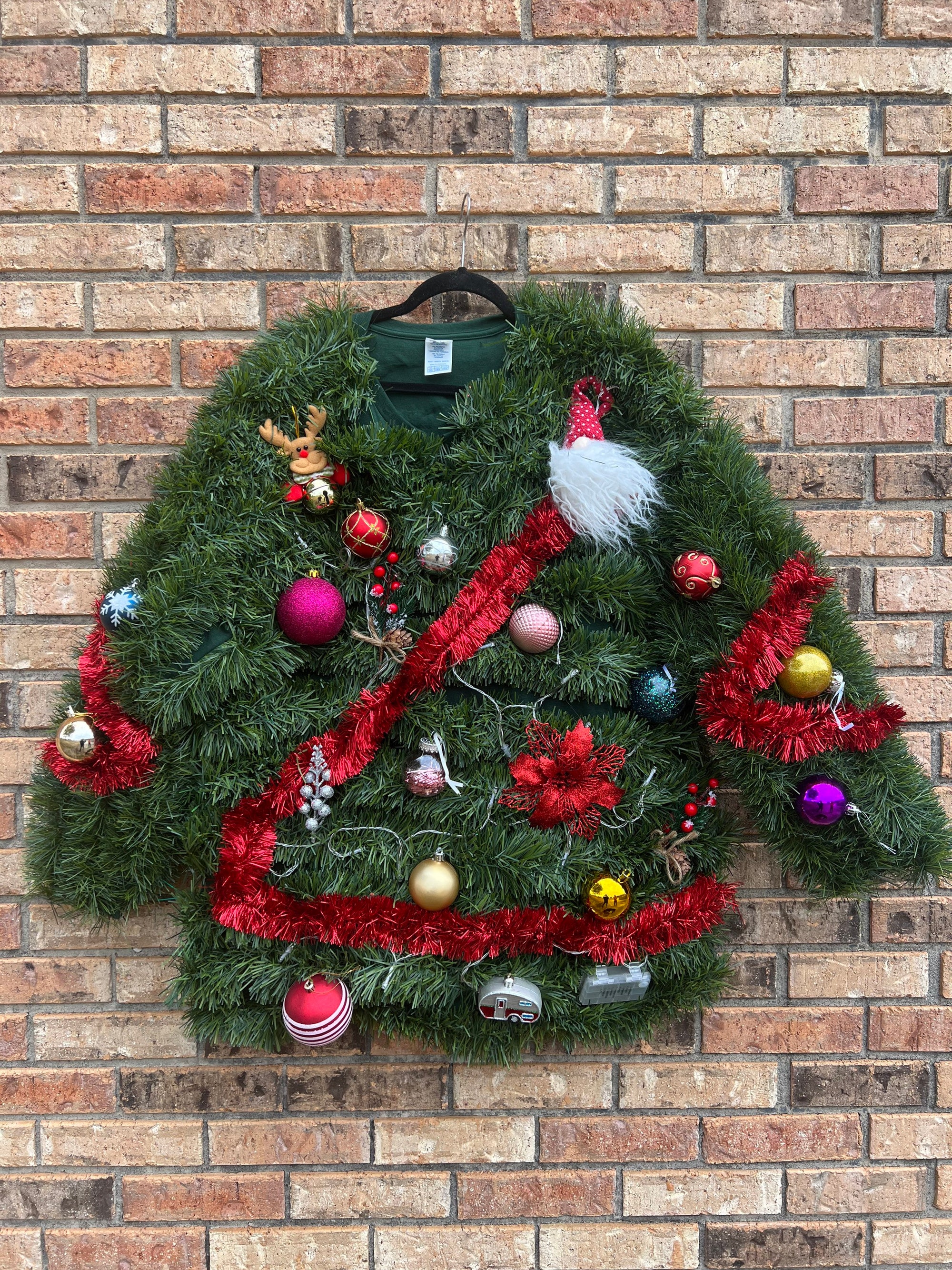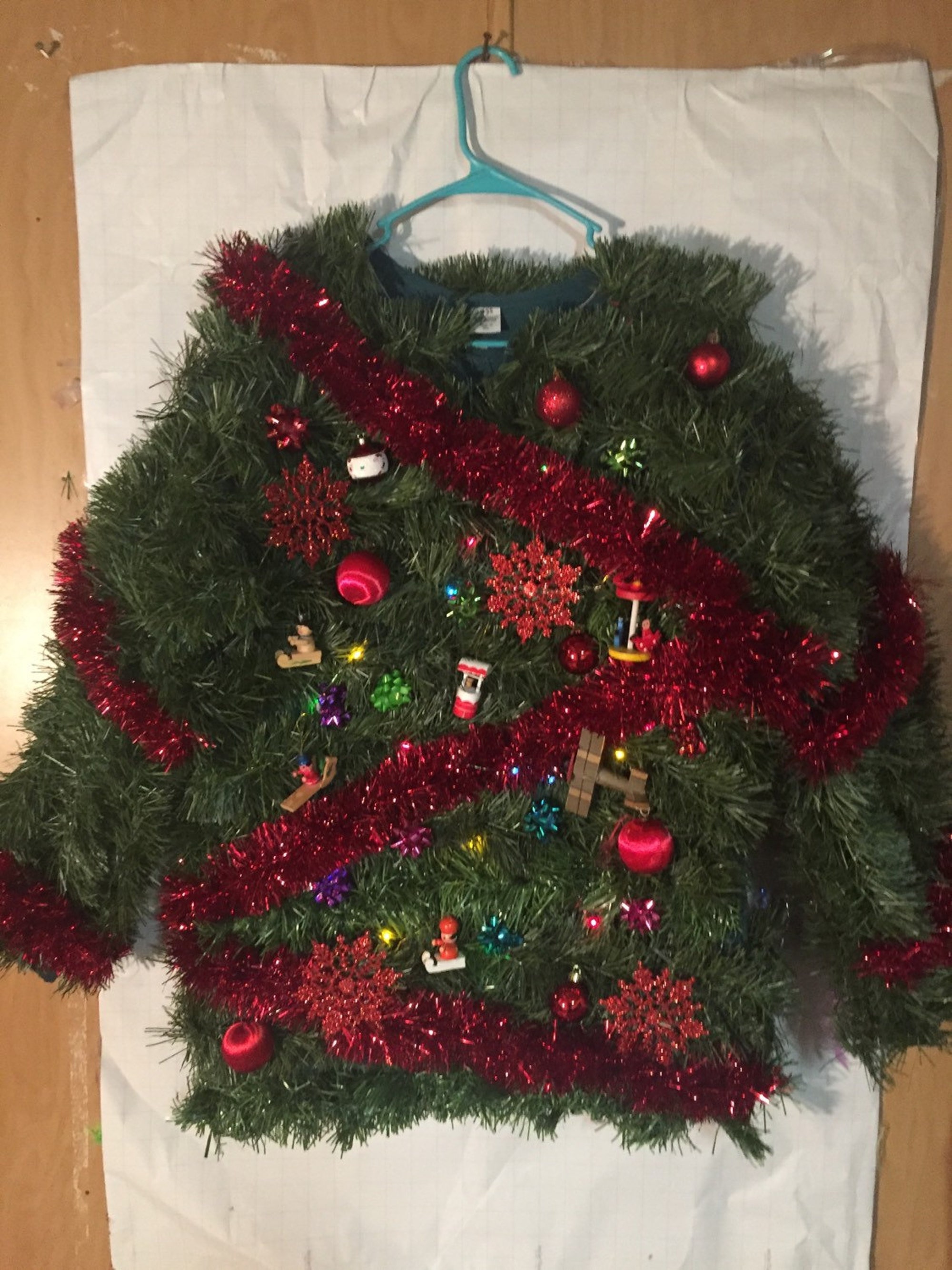 Walking Christmas TREE LiGhT UP! Tacky Ugly Hilarious Christmas Sweater Any Size Custom Made Colors/Ornaments May Vary