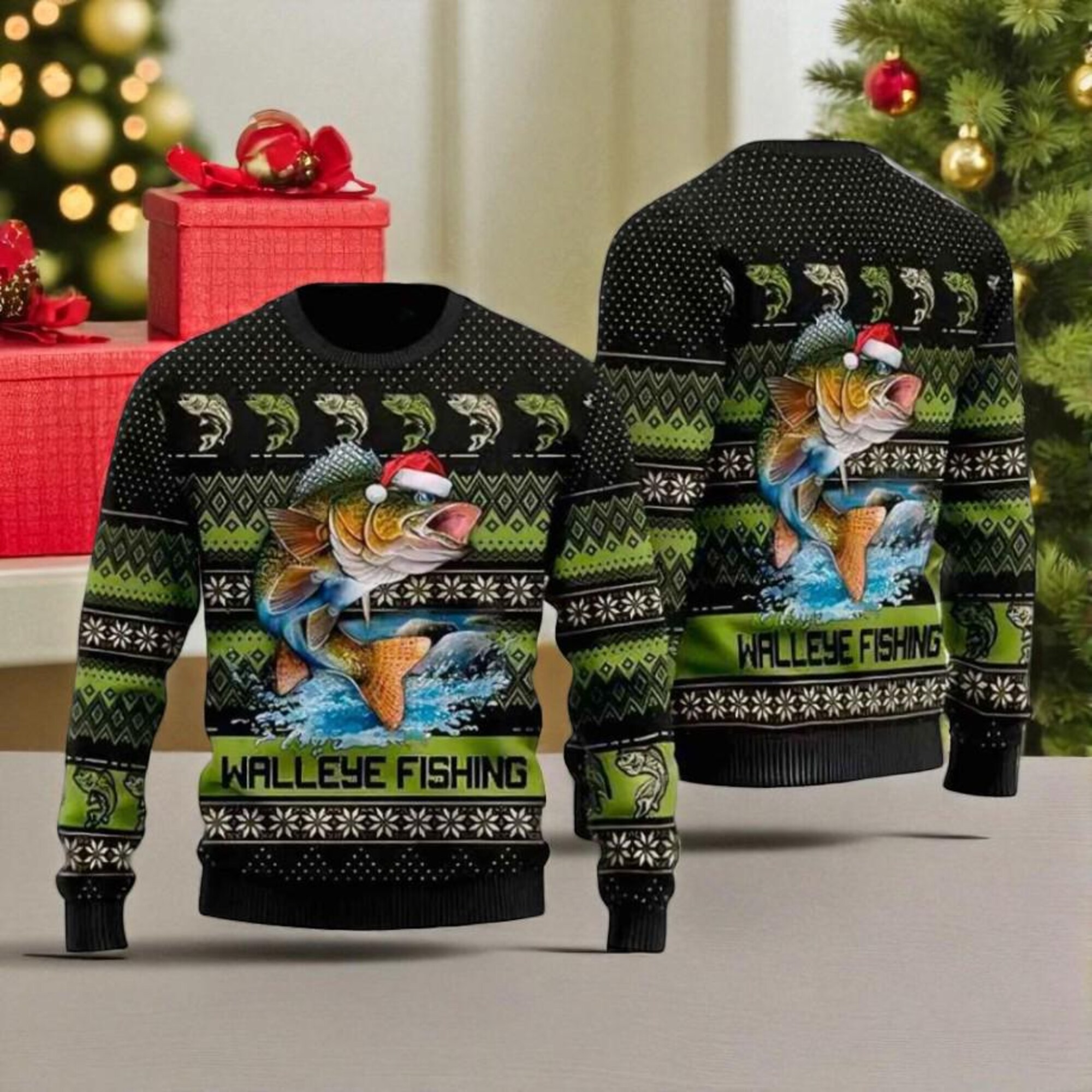 Walleye Fishing Christmas Sweater, Funny Fisherman Ugly Xmas Jumper, Holiday Outdoor Pullover, Gift for Men Who Love Fishing, holiday gift