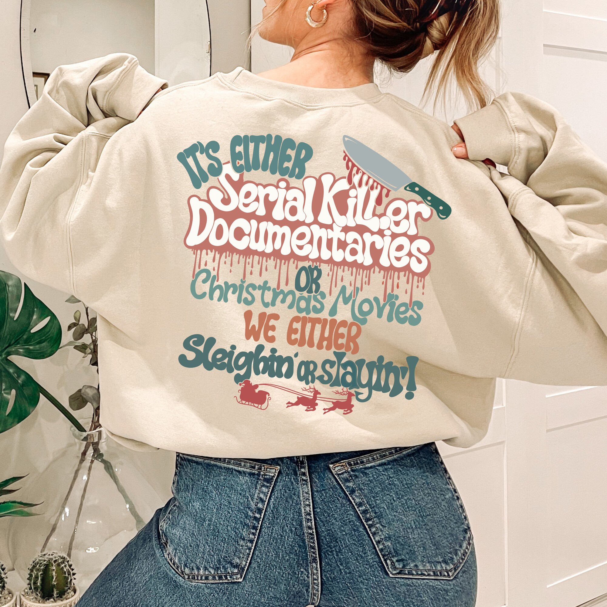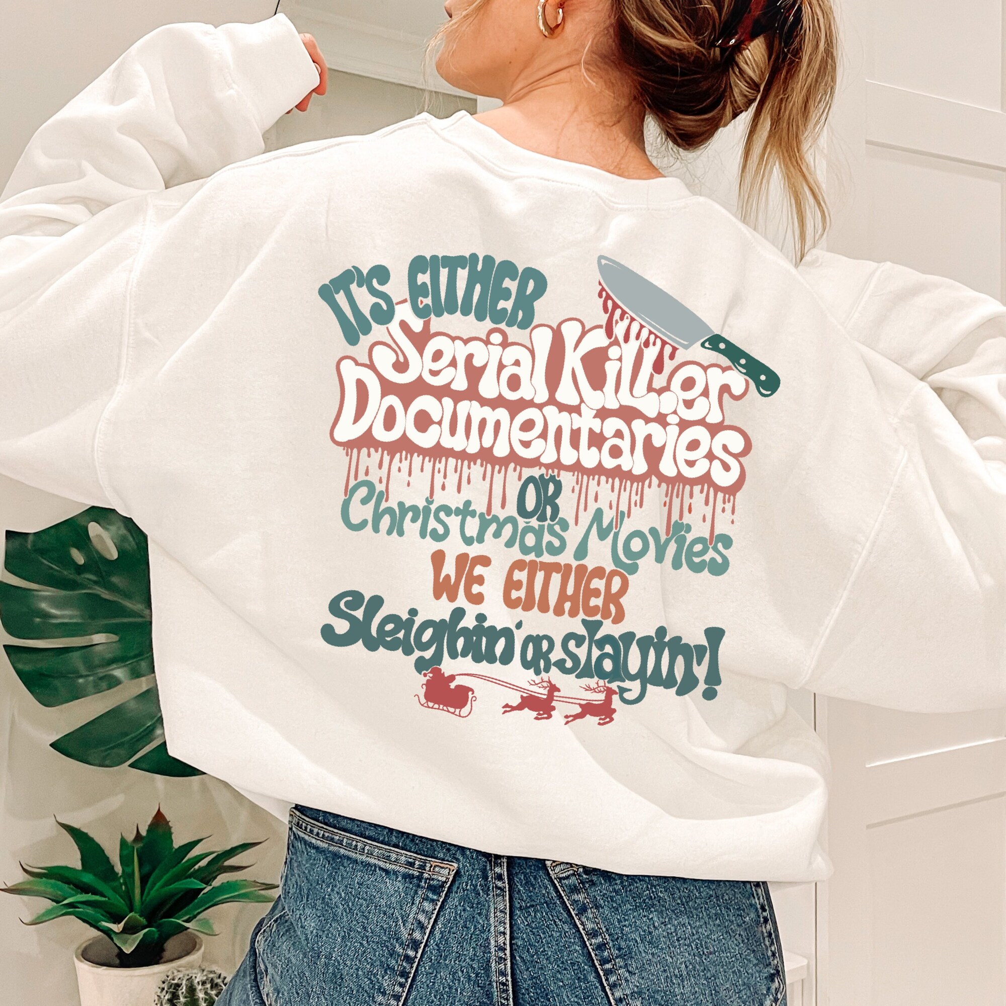 We Sleighin or Slaying Christmas Sweatshirt,Funny Christmas Sweatshirt, Christmas Movie Sweatshirt,Gift Christmas Sweatshirt,Christmas Movie
