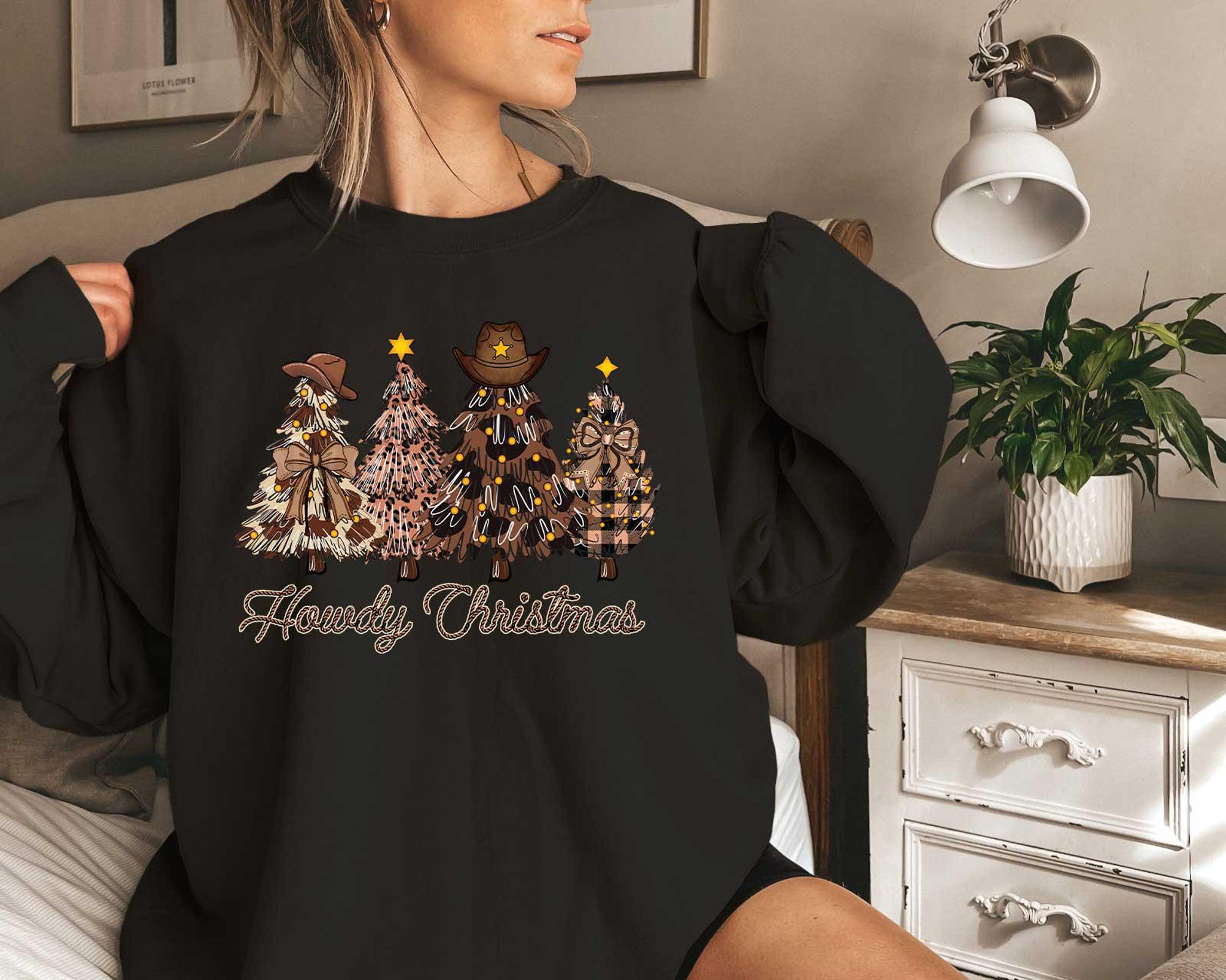 Western Howdy Christmas Tree Sweatshirt, Leopard Christmas Tree Sweatshirt, Christmas Graphic Tee, Holiday Sweatshirt, Winter Sweatshirt