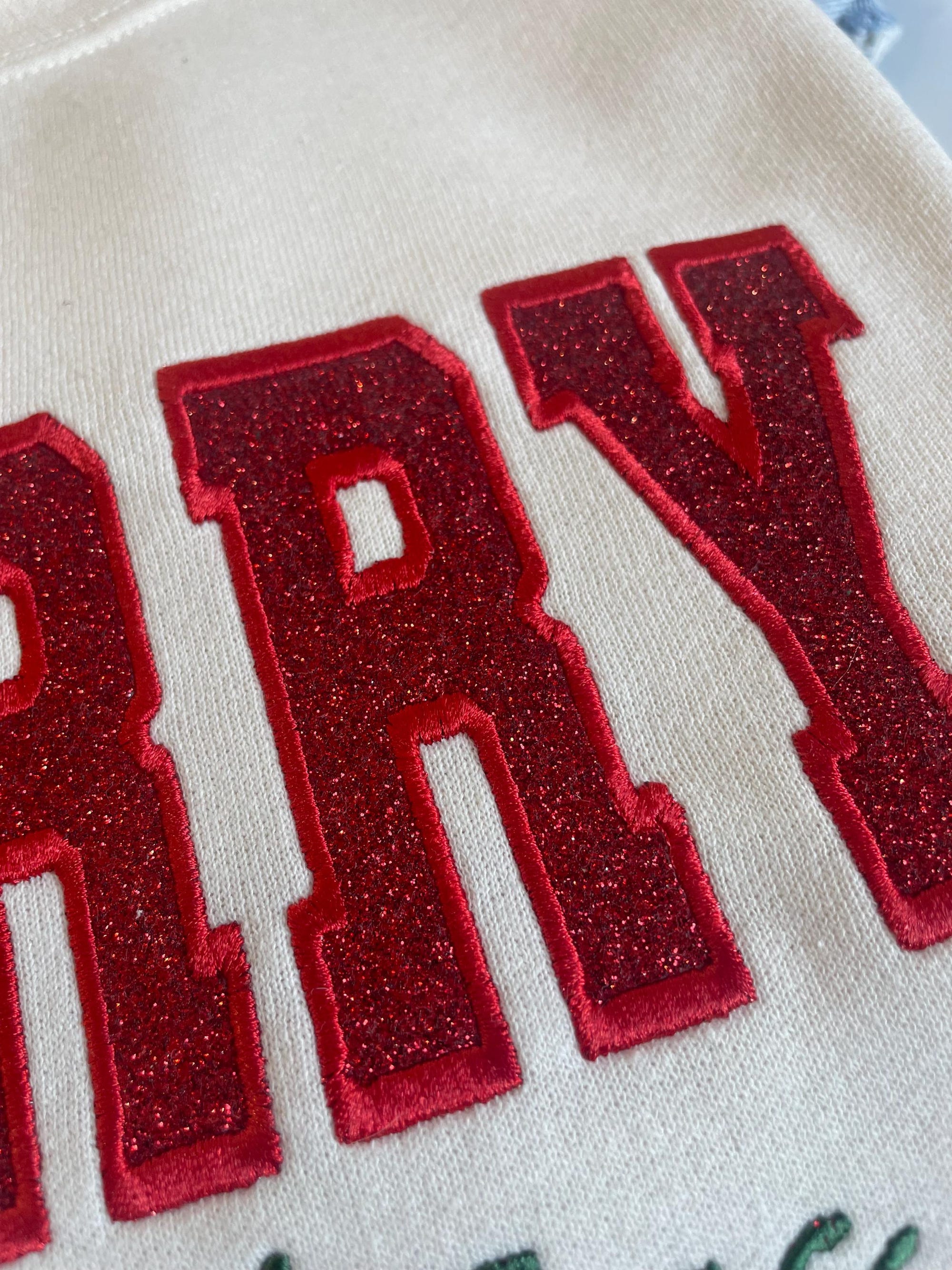 Get festive and stylish with this adorable Merry Christmas sweatshirt! Featuring beautiful embroidery details enhanced with a touch of glitter, this cozy pullover is the perfect way to celebrate the season. Designed with comfort in mind, the sweatshirt is soft, warm, and perfect for chilly holiday gatherings, family photos, or just curling up with a cup of cocoa. Dress it up with a pair of jeans or stay comfy with leggings – this holiday staple is ready for any occasion!