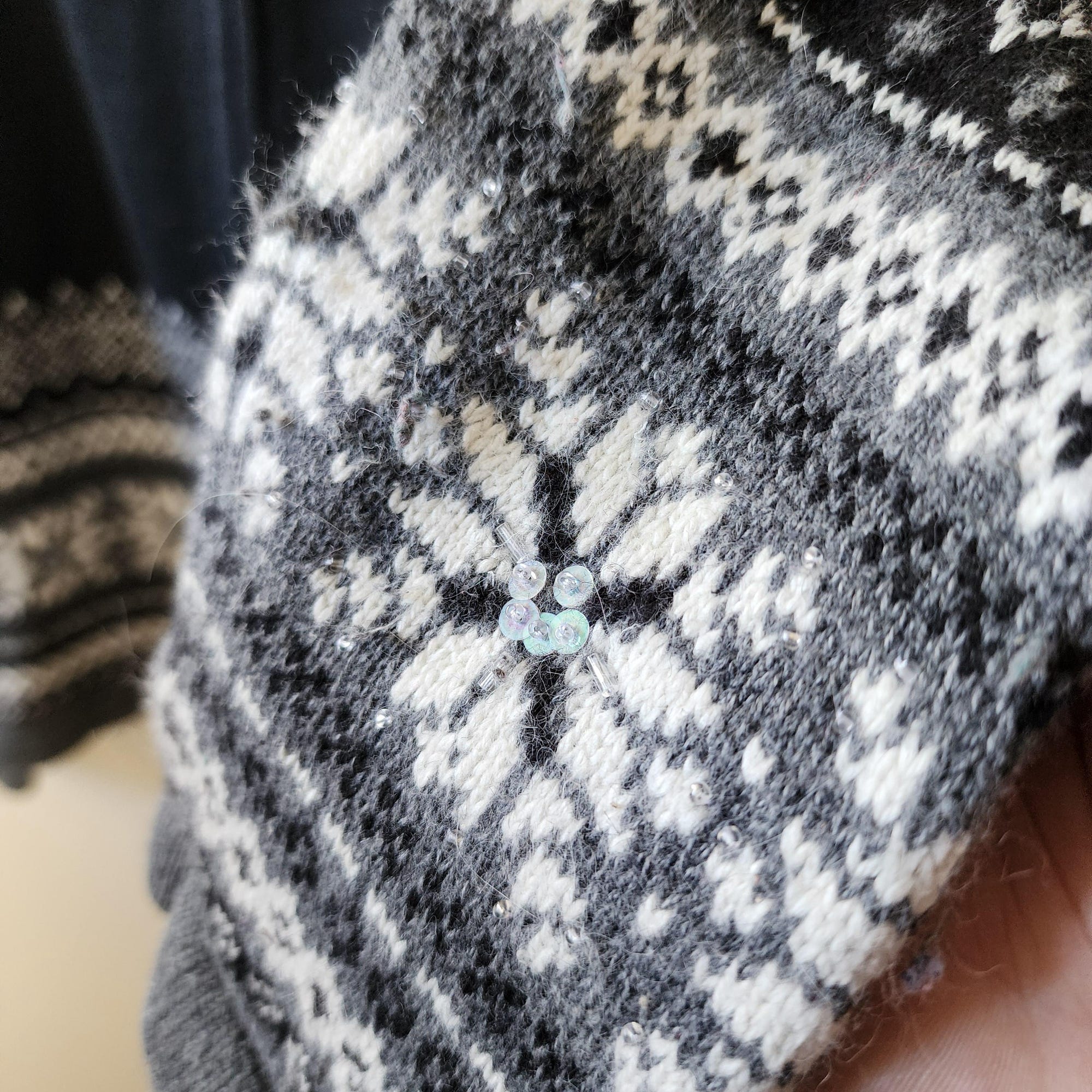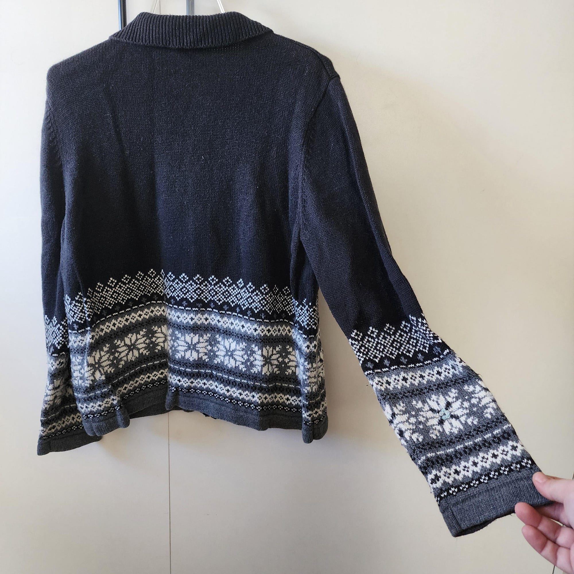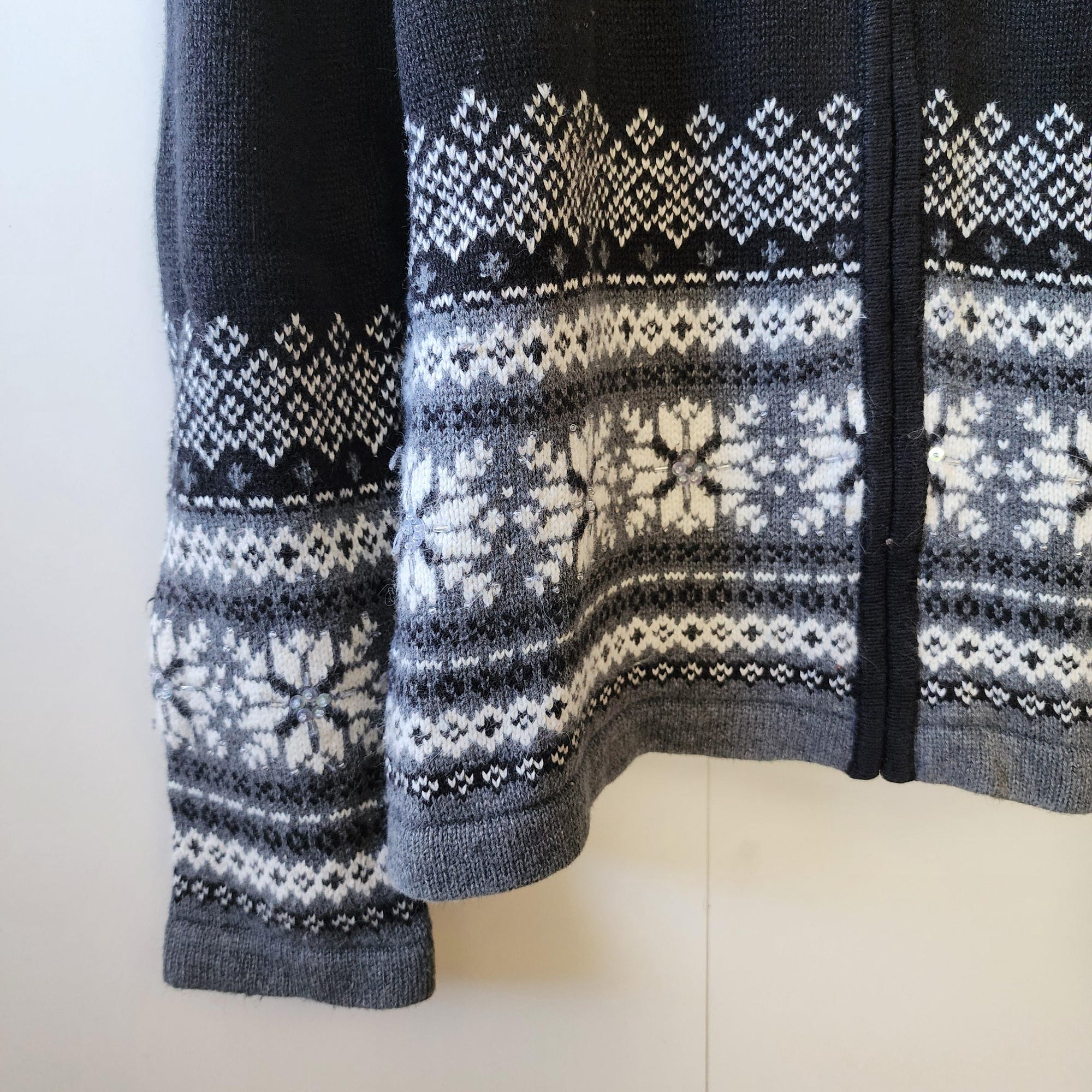 XL Croft & Barrow black and gray with snow flakes collared neck, long sleeves, full zip sweater women’s ugly Christmas sweater
