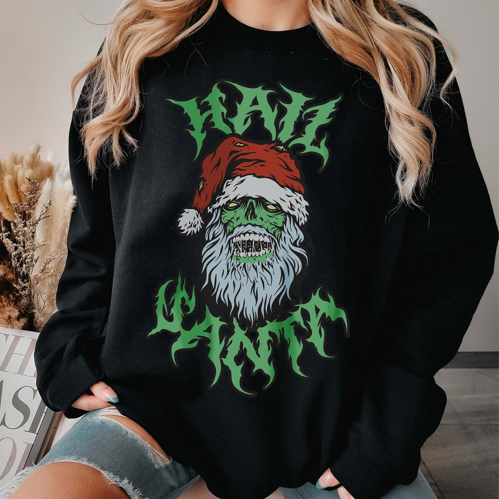 Zombie Santa Sweatshirt: Funny Black Metal Christmas Crewneck